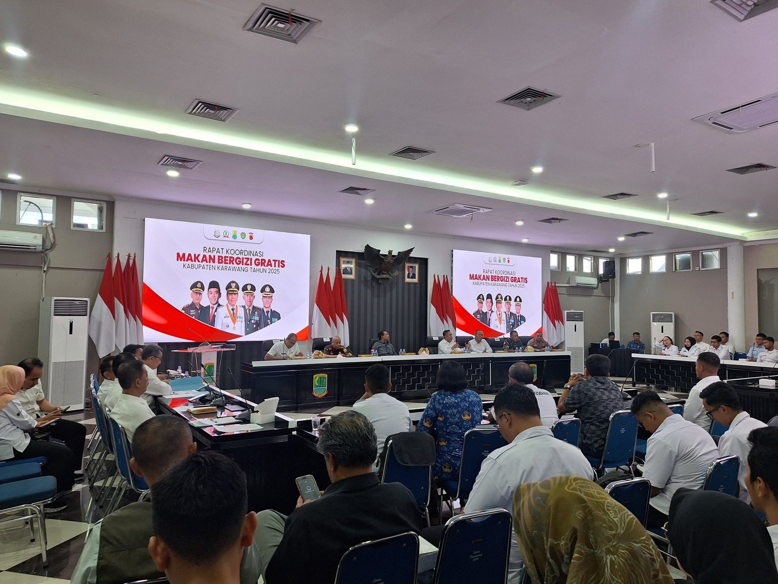 HARIAN KARAWANG– Forum Komunikasi Pimpinan Daerah (Forkopimda) Kabupaten Karawang menggelar rapat koordinasi pelaksanaan program Makan Bergizi Gratis (MBG) bersama 53 dapur Satuan Pelayanan Pemenuhan Gizi (SPPG) di Aula Lantai 3 Kantor Bupati Karawang, Rabu (1/10/2025).