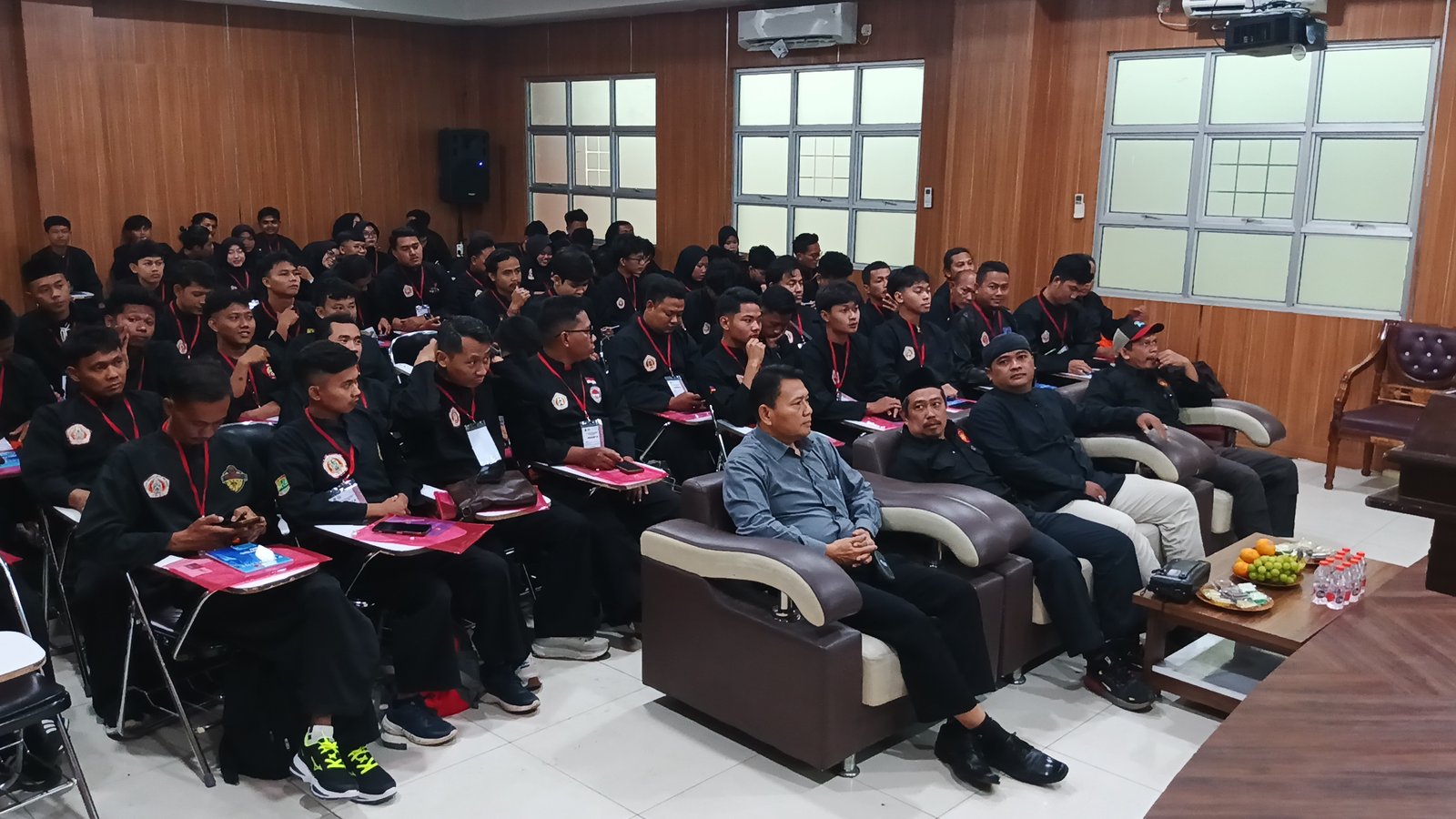 Sebanyak 97 pelatih dari berbagai perguron di Karawang mengikuti pelatihan. Pemateri hari pertama H. Deni Akbar, Ketua Lembaga Wasit Juri Pengprov IPSI Jawa Barat dengan membawakan materi Peraturan Pertandingan Pencak Silat 2025. (Alam)
